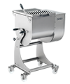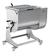 Stainless steel twin-blade mixer with tilting bowl for better dough discharge. The lid is fitted with openings for the introduction of flavourings during processing. The bowl is mounted on a frame equipped with swivel wheels, two of which have brakes.