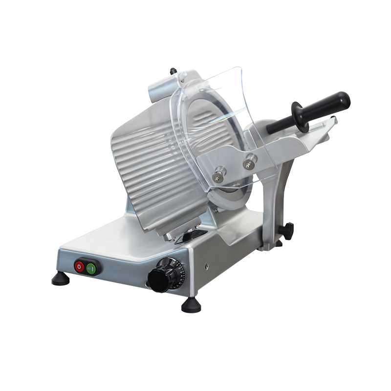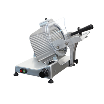 Manual gravity slicer in aluminium, single-phase motor. Easy to clean.