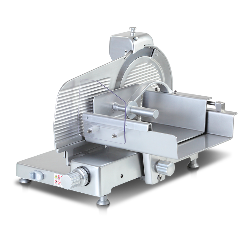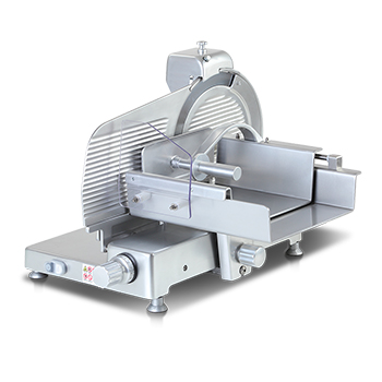 Manual gravity slicer in aluminium, single-phase motor. Easy to clean.