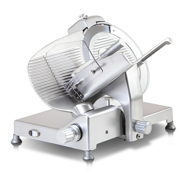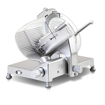 Manual gravity slicer in aluminium, single-phase motor. Easy to clean.